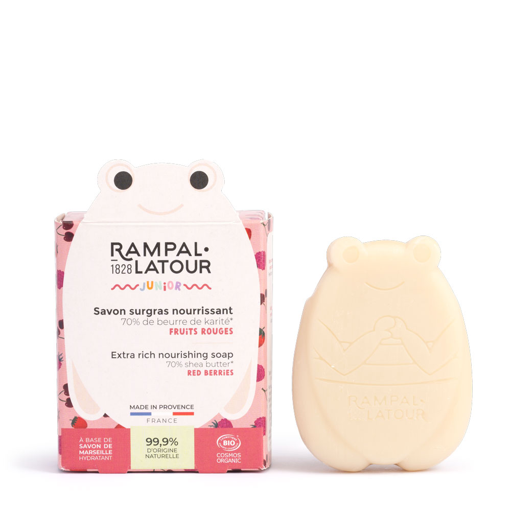 Rampal Latour a creat un săpun hrănitor dedicat special celor mici. Pe bază de unt de shea organic și cu un parfum delicios de fructe roșii. Notele de căpșuni și zmeură se combină armonios în spuma generoasă și cremoasă. Forma sa mică este perfect croită pentru palmele mici ale fetițelor sau băieților.