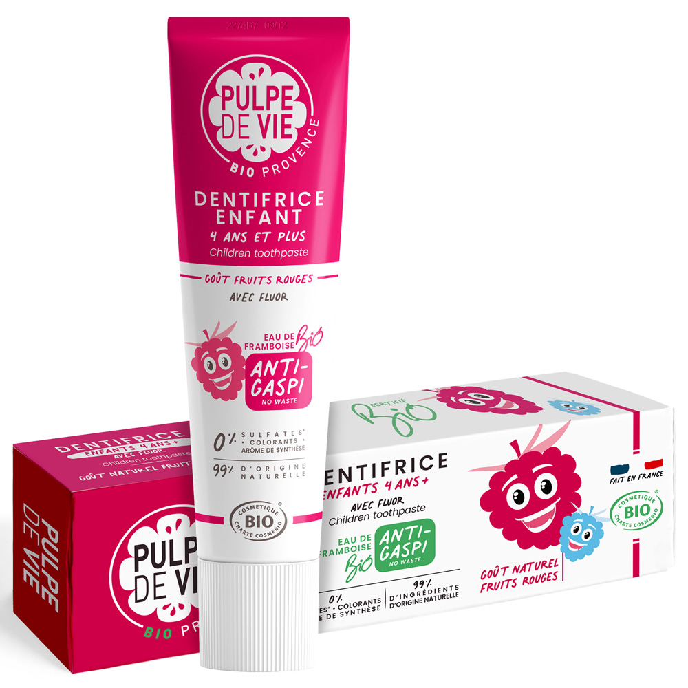 Așa că pentru a avea cea mai bună grijă de dinții micuților, limitați-vă la fluorul prezent în pasta de dinți. Supliment numai după consultarea medicului. În pasta de dinți organică pentru copii, Pulpe de Vie a inclus fluor în strictă conformitate cu dozajul recomandarilor medicale. Nici mai mult, nici mai puțin.