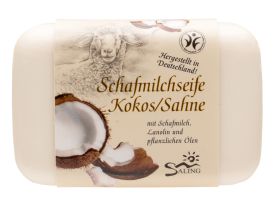 Săpunul cremos cu lapte de oaie și lanolină este îmbogățit cu ulei de cocos, recunoscut pentru proprietățile sale hidratante, protectoare și antioxidante.