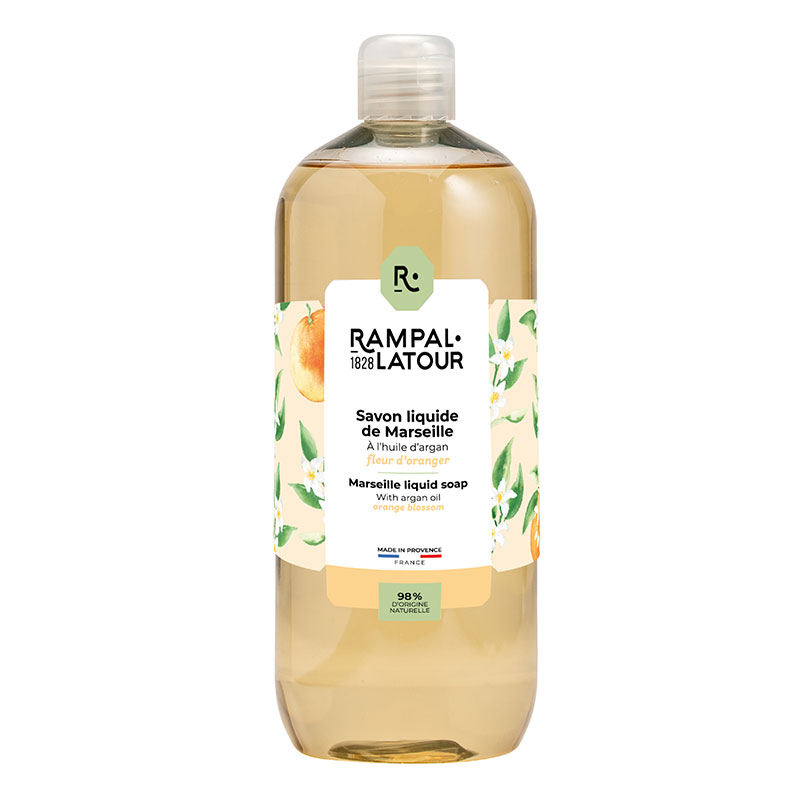 Artizani savonieri încă de la 1828, Rampal Latour vă prezintă varianta practică a săpunului de Marsilia - săpunul lichid. Realizat după reţeta tradiţională originală din uleiuri 100% vegetale, este bogat în glicerină naturală, ideal pentru spălarea mâinilor şi corpului.