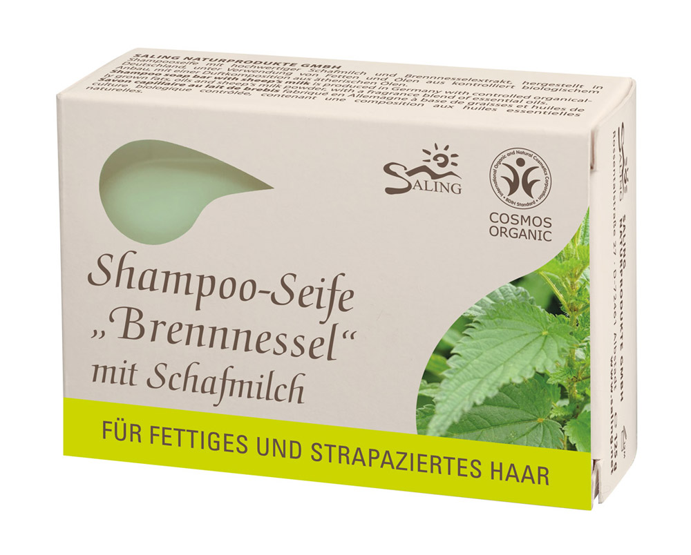 Șamponul solid culapte de oaie și extracte de urzică de la Saling este ideal pentru părul gras și/sau degradat.