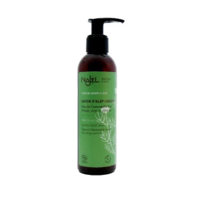 Sapun de Alep lichid BIO cu aroma ambra si oud, 200ml - NAJEL