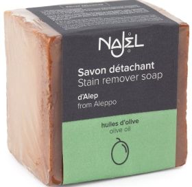 Alaturi de detergentul de rufe, sapunul Najel poate fi folosit inainte de spalarea la masina sau manuala, pentru indepartarea petelor dificile. Fabricat in exclusivitate din ulei de masline (cunoscut pentru proprietatile sale de curatare si degresare, atunci cand este saponificat), sapunul Najel este potrivit pentru indepartarea petelor de pe toate tipurile de haine, inclusiv cele delicate sau ale bebelusilor.