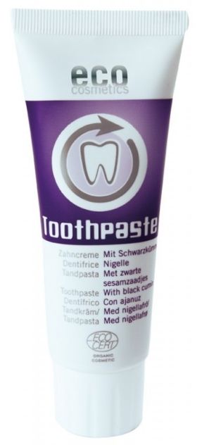 Semintele de chimen negru au fost cultivate din cele mai vechi timpuri in Orient si folosite atat pentru condimentarea mancarurilor, dar si in medicina traditionala, pentru intarirea sistemului imunitar. Uleiul obtinut prin presarea semintelor de chimen contine acizi grasi polinesaturati foarte valorosi care, adaugati pastei de dinti previn parodontoza si afectiunile gingiei. Mixtura perfecta dintre salvie si ceaiul verde organic curata dintii riguros si previne aparitia cariilor si a placii dentare. Imbogatita cu carvon, pasta de dinti Eco Cosmetics este usoara si spumoasa, cu un gust placut si proaspat. Agentii de curatare blanzi pe baza de siliciu protejeaza smaltul dintilor, iar ceaiul verde reduce inflamarea si calmeaza durerile gingivale.