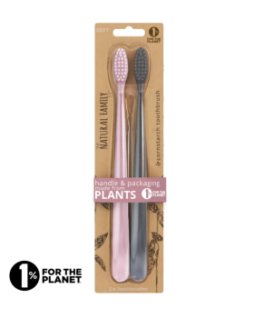 Periuta de dinti bio Nfco este complet biodegradabila, inclusiv ambalajul. Manerul este realizat din amidon de porumb nemodificat genetic, iar perii din nylon nu contin BPA.
