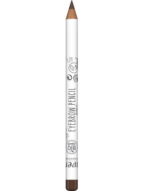 Creionul pentru sprancene Lavera coloreaza, defineste si umple conturul sprancenelor. Ingredientele creionului sunt atent alese: ulei de jojoba, unt de shea organic, vitamina E, pentru extra hidratare. Poate fi folosit si de persoanele care poarta lentile de contact. Creionul de sprancene Lavera vine in doua variante de culoare Brown 01 (maro mai inchis) si Blond 02 (maro mai deschis).